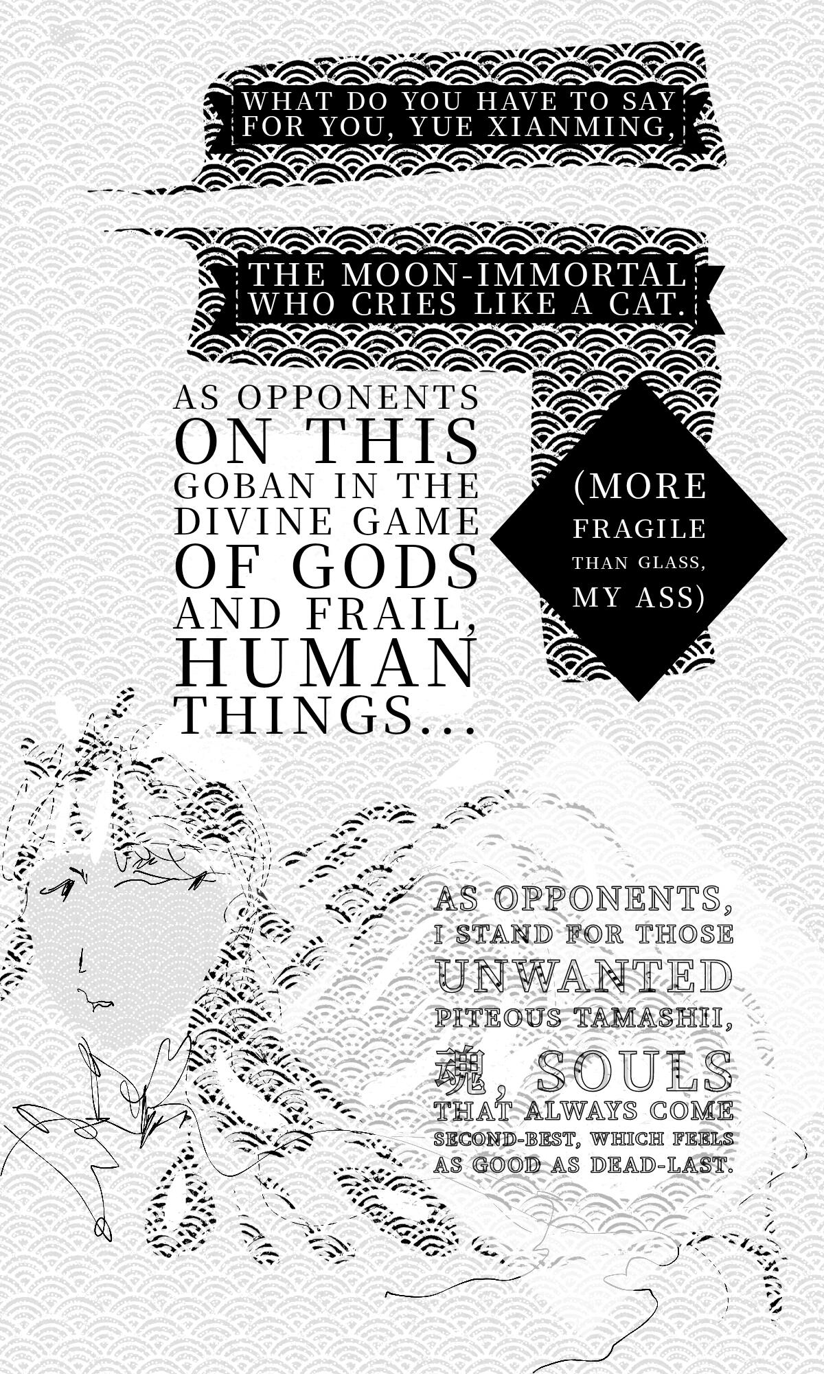 On the other hand, Zhouyu envies and despises Xianming in equal measure to loving her, and struggles immensely with accepting her own self-worth, wishing to believe love is as sincerely easy and light and gentle as Xianming says it is, despite feeling unable to. Zhouyu wishes for a miracle that will make loving Xianming easy.